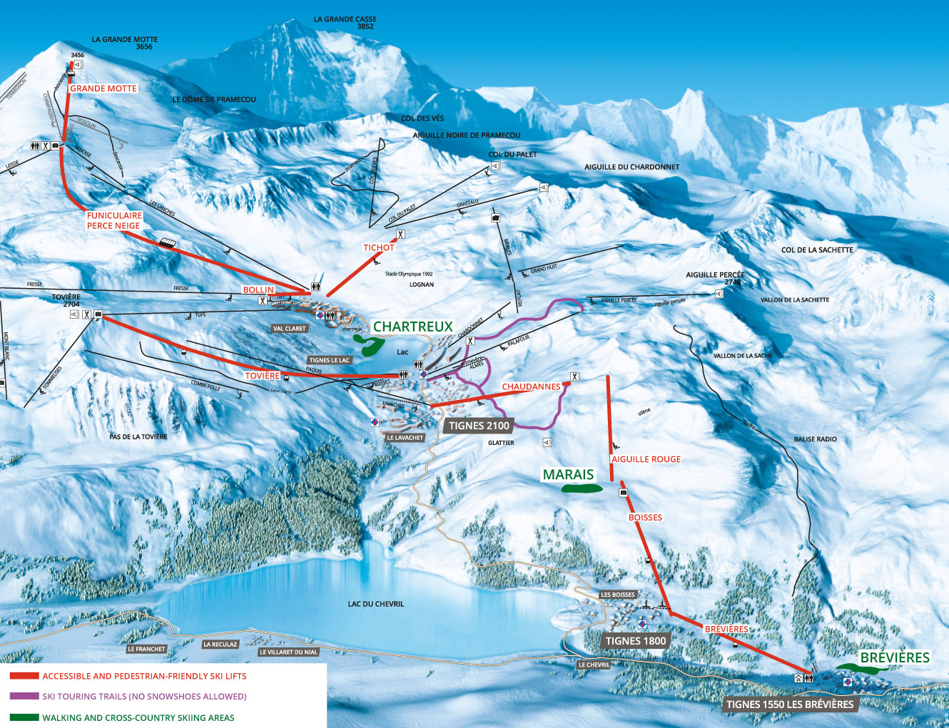 - 9 lifts are accessible to pedestrians in the Tignes area. Remember to check the list of these (see below)